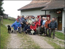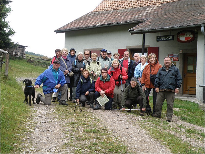 Sortie du 1er Juin 2011 : Le Hohwald et la Chaume des Veaux.( voir diaporama ) * Parcours d'environ 13,5 km avec dénivelé positif total de 400 m environ : Départ du parking de l'église du Hohwald et montée par le Witterthalhof, puis par le bas du Buchbuckel, le Col du Kreuzweg et le chemin vers le Zundelkopf - Arrivée à l' "Auberge du Hochfeld" où nous attendent une soupe bien chaude et des saucisses, bienvenues par ce temps froid et venteux - Surprise au dessert : gâteau au chocolat, confectionné et offert par Martin et France - Ainsi revigorés, retour par le Zundelkopf, passage à la Cascade de l'Andlau et arrivée au parking. * Ci-contre : Photo du groupe (20 part. dont "Nemo") - pour l'agrandir, cliquez dessus ! |